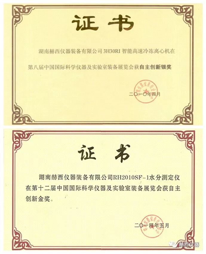 2010年,3H智能高速冷冻离心机荣获中国仪器仪表行业协会颁发的“自主创新银奖”。